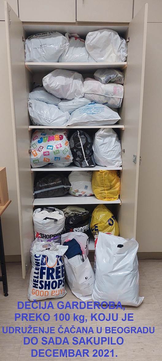 Прихват донација у стварима Удружење Чачана у Београду биће организовата тако што ће до 26. децембра 2021. године сви који желе да донирају ствари моћи да се јаве мејлом на udruzenjecacana@gmail.com, СМС поруком на телефон 0637444801 или поруком на нашем Фејсбук налогу “Udruženje Čačana u Beogradu”. Они који живе у Чачку донације у роби могу доставити у просторије Кола Српских Сестара у улици Цара Лазара број 33, Чачак. Пре тога се можете најавити госпођи Бојани из Кола Српских сестара на број телефона 0653489000.