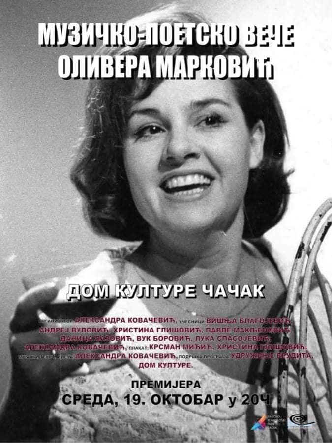У Великој сали Дома културе у Чачку, одржано је музичко – поетско вече посвећено Оливери Марковић.