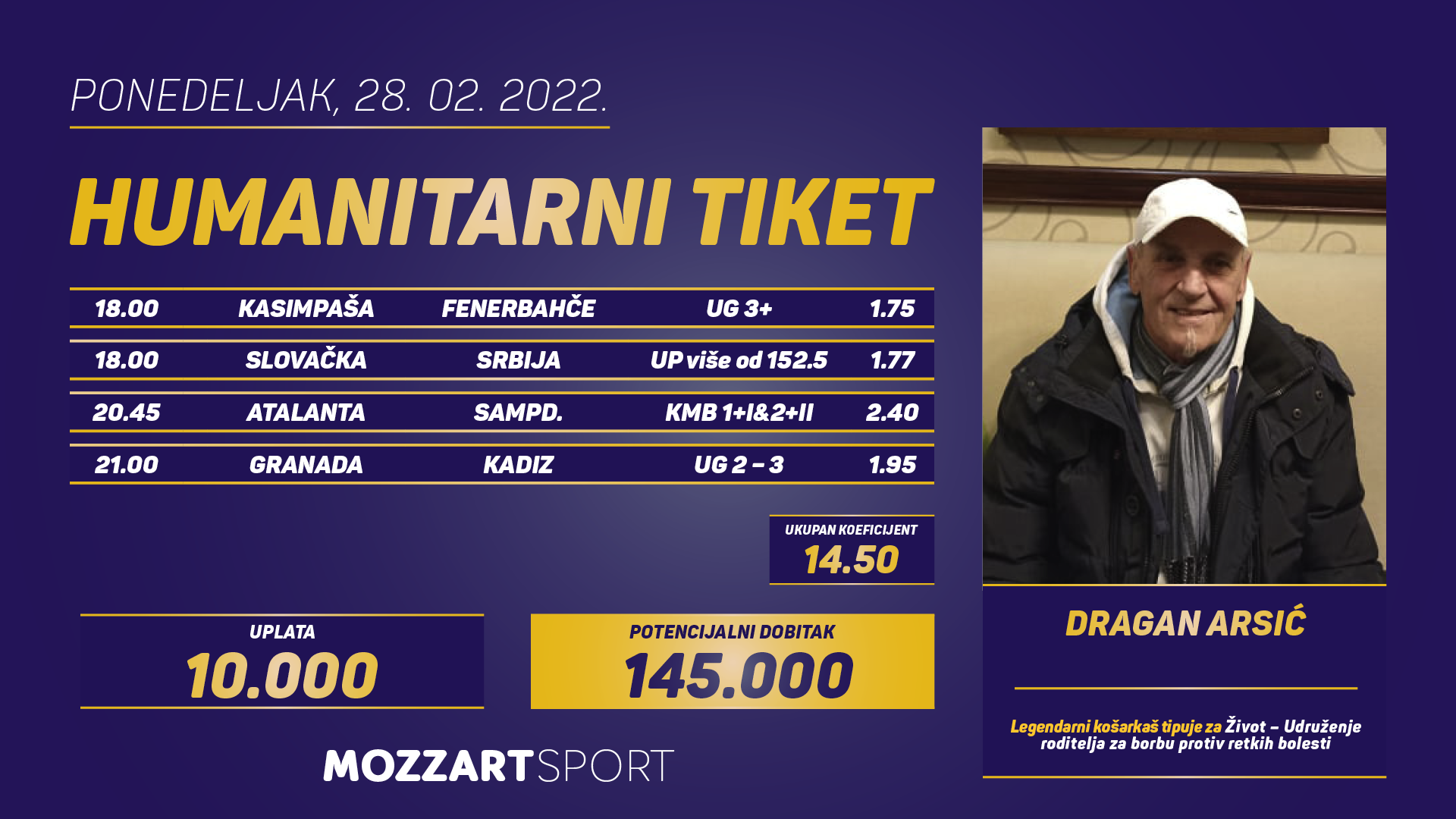 - HUMANITARNI TIKET U PODNE: DRAGAN ARSIĆ tipuje za Život – Udruženje roditelja za borbu protiv retkih bolesti