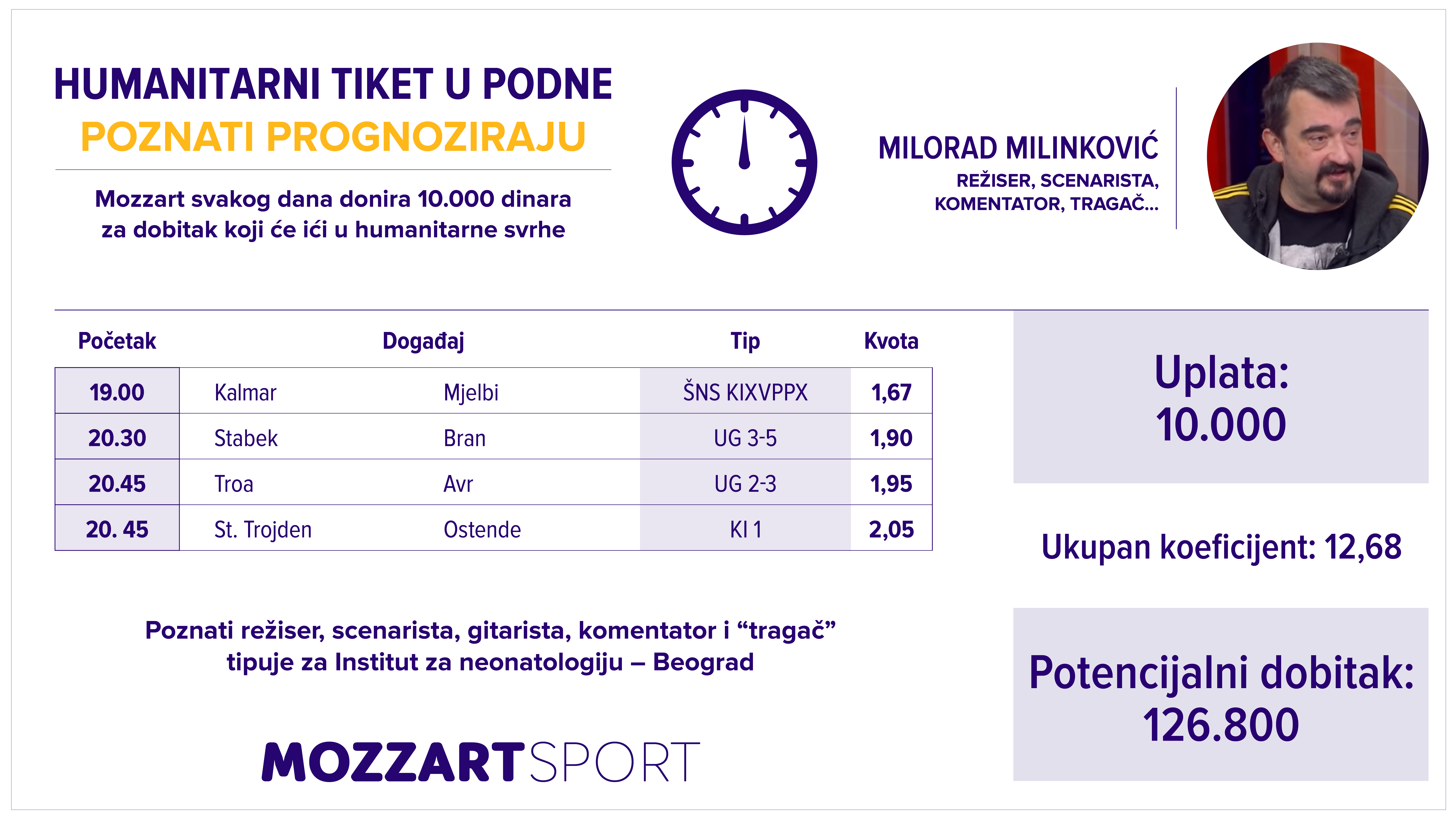 Nakon duže “potere” uspeli smo da Milorada Milinkovića “angažujemo” kao dobrotvornog kladioca u MOZZARTOVOM Humanitarnom tiketu u podne.