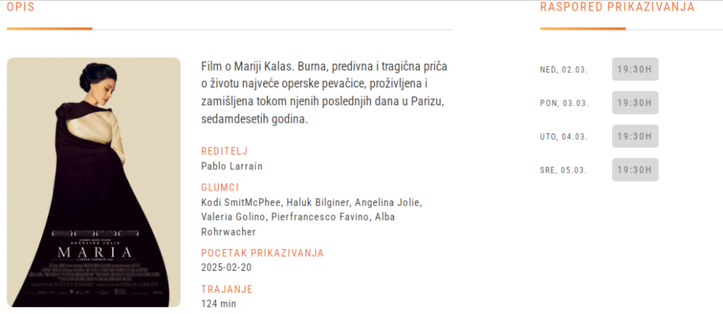 FilmBioskop Sutjeska: MARIJANema komentaraNo tags361pregleda share on Facebookshare on Twittershare on VKontakteOstavite komentar Ostavite komentar Cancel replyCommentName Email Save my name, email, and website in this browser for the next time I comment. PROMOCIJA MONOGRAFIJE POSVEĆENA GRUPI SMAKSAVA GUCUNSKI (Foto)Povezane vestiFilmUncategorizedĐavo nosi PraduDjurdjeapril 30, 202633Poštovani čitaoci, Kad otvori prozor porodične kuće, Milena ne miriše proleće nego buđ. Vidi planinu kofera, raspadnutog nameštaja, konzervi i...FilmŽetva u bioskopu SutjeskaDjurdjeapril 21, 2026april 21, 202641Po romanu "Srpsko srce Johanovo", inspirisanim istinitim događajima. Film „Žetva“ prati zapanjujuću, istinitu priču o nemačkom baronu Johanu fon Vagneru,...FilmČOVJEK LAVINADjurdjedecembar 5, 2025decembar 5, 2025234Dokumentarne večeri u KC Čačak u decembru biće posvećene festivalu muzičkog dokumentarnog filma DOK’N’RITAM. Prvo od dva ostvarenja prikazanog na...FilmUloge: Ema Stoun, Džesi Plimons, Ejdan DelbisDjurdjenovembar 29, 2025306Dvojica mladića opsednuta teorijama zavere kidnapuju direktorku velike kompanije, uvereni da je ona vanzemaljac koji želi da uništi planetu Zemlju....