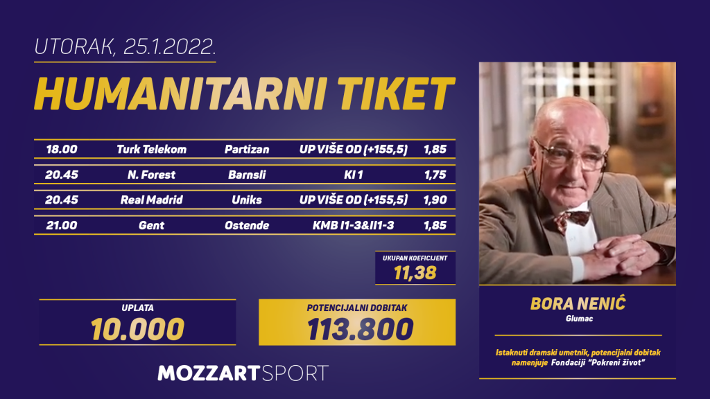Na portalu Mozzart Sport pogledajte ceo Humanitarni tiket u podne: