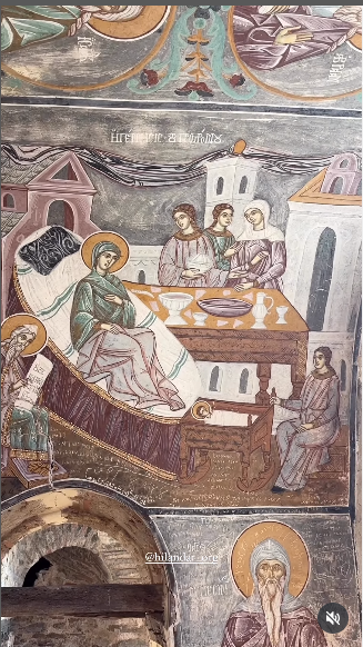 Freska praznika iz priprate paraklisa Sv. Jovana Preteče na poslednjem spratu pirga Sv. Save u Hilandaru