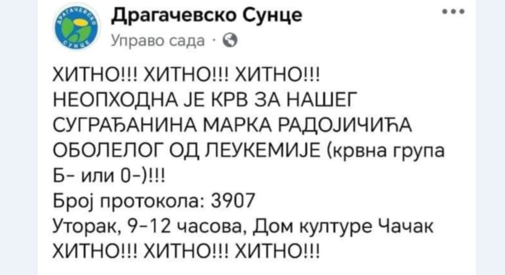 Humanitarni radHitno potrebna krvVidite u tekstu!Nema komentaraNo tags692pregleda share on Facebookshare on Twittershare on VKontakteOstavite komentar Ostavite komentar Cancel replyCommentName Email Save my name, email, and website in this browser for the next time I comment. UKRŠTENE REČIХиландарско лекарско друштвo, hilandar_foundationPovezane vestiHumanitarni radPravoslavljeMetoh KakovoDjurdjeapril 18, 2026april 18, 2026111https://www.facebook.com/reel/1301614781928264https:// teofil1198.org/doniraj/ https://www.facebook.com/reel/1301614781928264 https://www.hilandar.org/donacije/ https://teofil1198.org/doniraj/ https://teofil1198.org/doniraj/ ...Humanitarni radPravoslavljeTeofil 1198Djurdjeapril 14, 2026123https://www.hilandar.org/donacije/ https://www.hilandar.org/donacije/...Humanitarni radOvakve poruke znaju da budu zamorne i čitaocima i nama koji ih pišemoDjurdjeapril 14, 2026april 14, 202633Ali, druge nam nema, pošto nam ni predaje nema, iako oko nas padaju neke od poslednjih profesionalnih redakcija. Ovakvim pismima...Humanitarni radPravoslavljeHristos Vaskrse – Vaistinu Vaskrse! ХРИСТОС ВАСКРСЕ – ВАИСТИНУ ВАСКРСЕ!Djurdjeapril 12, 2026april 12, 2026150Поштовани добротвори и пријатељи Хиландара, желимо Вама и вашим најближима, срећне, у здрављу проведене и Богом благословене васкршње празнике, уз најрадоснији поздрав:...