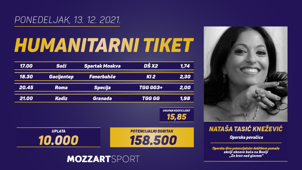 Humanitarni radMozzartHumanitarni tiket u podne, Nataša Tasić KneževićMozzart SportNema komentaraNo tags1.55Kpregledahttps://www.mozzartsport.com/fudbal/vesti/humanitarni-tiket-u-podne-natasa-tasic-knezevic-tipuje-za-akciju-obnove-kuca-na-baniji-krov-nad-glavom/406832 share on Facebookshare on Twittershare on VKontakteOstavite komentar Ostavite komentar Cancel replyCommentName Email Save my name, email, and website in this browser for the next time I comment. Juniori Borca zaledili Partizan na minus 15Од прве српске болнице коју је основао Свети Сава у манастиру Хиландар па до Хиландарског лекарског друштваPovezane vestiHumanitarni radPravoslavljeTeofil 1198Djurdjeapril 14, 202637https://www.hilandar.org/donacije/ https://www.hilandar.org/donacije/...Humanitarni radOvakve poruke znaju da budu zamorne i čitaocima i nama koji ih pišemoDjurdjeapril 14, 2026april 14, 202624Ali, druge nam nema, pošto nam ni predaje nema, iako oko nas padaju neke od poslednjih profesionalnih redakcija. Ovakvim pismima...Humanitarni radPravoslavljeHristos Vaskrse – Vaistinu Vaskrse! ХРИСТОС ВАСКРСЕ – ВАИСТИНУ ВАСКРСЕ!Djurdjeapril 12, 2026april 12, 2026145Поштовани добротвори и пријатељи Хиландара, желимо Вама и вашим најближима, срећне, у здрављу проведене и Богом благословене васкршње празнике, уз најрадоснији поздрав:...Humanitarni radPravoslavljeHristos Vaskrse!Djurdjeapril 10, 2026149 ...