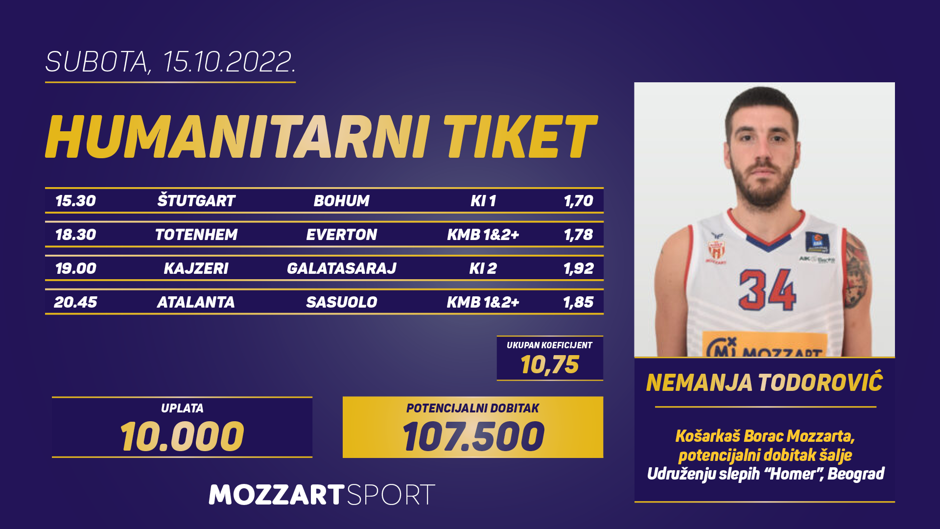 Humanitarni radMozzartHumanitarni tiket u podne: Nemanja Todorović tipuje za Udruženje slepih “Homer” iz BeogradaNema komentarahumanitarni tiketmozzartTodor852pregledahttps://www.mozzartsport.com/fudbal/vesti/humanitarni-tiket-u-podne-nemanja-todorovic-tipuje-za-udruzenje-slepih-homer-iz-beograda/433415 Tags :humanitarni tiketmozzartTodorshare on Facebookshare on Twittershare on VKontakteOstavite komentar Ostavite komentar Cancel replyCommentName Email Save my name, email, and website in this browser for the next time I comment. Radojko Nikolić, poznati književnik i profesorČačak 94 Quantox ubedljivo poražen od SpartakaPovezane vestiHumanitarni radPravoslavljeNedelja mironosica (Недеља мироносица)Djurdjeapril 27, 2026april 27, 2026119Недеља мироносица и празник Преподобног Акакија Кавсокаливита свечано су прослављени у келији Успења Пресвете Богородице у Кавсокаливији. Свеноћно бденије и...Humanitarni radPravoslavljeDjurdjeapril 24, 2026132https://www.hilandar.org/donacije/ https://www.instagram.com/reel/DXCnx5rDlJe/?igsh=MWNhNnd5cXdsczJyNA== https://teofil1198.org/doniraj/...Humanitarni radPravoslavlje„U opasnosti smo!” – Nikolina (8) i Lara (6) strepe od VUKOVA i da im KLIZIŠTE ne odnese kuću! (video)Djurdjeapril 21, 2026204„Vuk nam je jednom došao u dvorište i napao jagnje. Mnogo sam se uplašila i od tada ne smemo da...Humanitarni radPravoslavljeHilandarsko selo – Teofil 1198Djurdjeapril 20, 202658https://www.instagram.com/reels/DNWGkMItkC1/ https://teofil1198.org/doniraj/ https://www.instagram.com/reels/DNWGkMItkC1/ https://www.hilandar.org/donacije/ ...