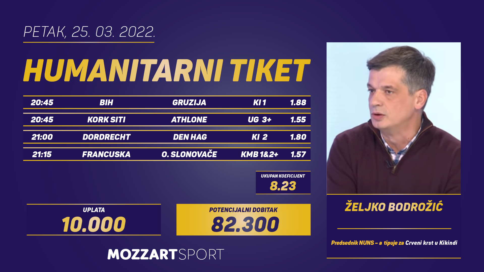 HUMANITARNI TIKET U PODNE: ŽELJKO BODROŽIĆ tipuje za Crveni krst u Kikindi