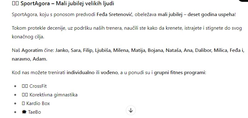 SportUncategorizedMali jubilej velikih ljudi, SportAgora! Djurdjeoktobar 27, 2025172Dragi naši prijatelji i članovi, sa velikim ponosom želimo da podelimo sa vama jedan poseban trenutak – SportAgora, pod vođstvom...