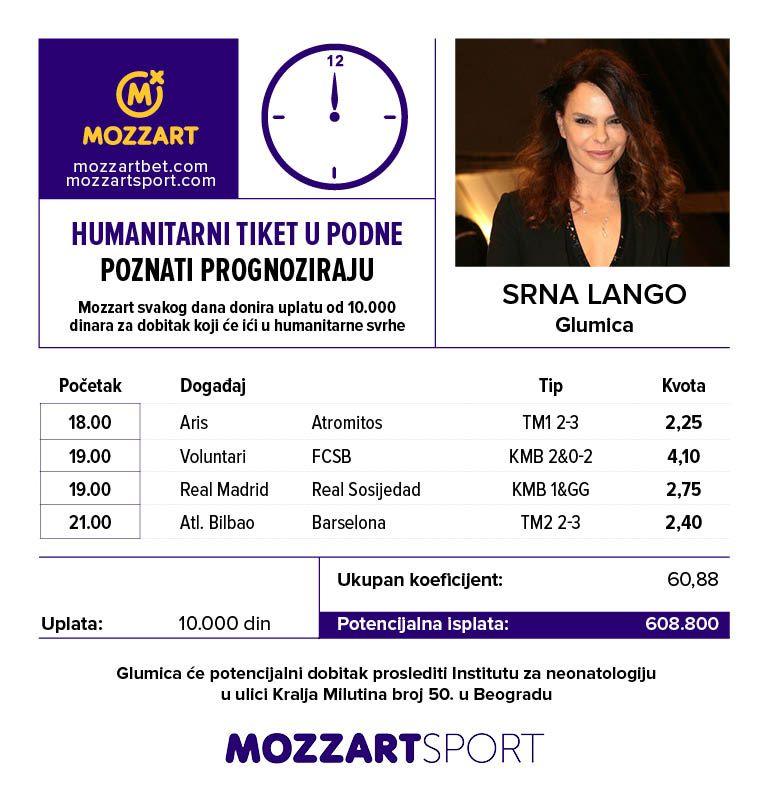 Inače, u „Humanitarnom tiketu u podne“ dosad je donirano sjajnih 14.707.690,00 dinara.