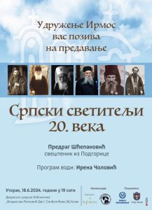 Organizator predavanja je Udruženje “Irmos”. Program je vodila Irena Čolović, a gost predavač bio je protojerej Predrag Šćepanović, sveštenik pri Hramu Hristovog vaskrsenja u Podgorici.