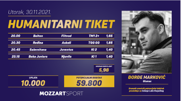 Pored umetnosti Đorđe Marković obožava sport. Sa velikim emocijama govorio je o poslednjoj utakmici naše fudbalske reprezentacije koja nas je odvela na Mundijal. Pohvalio je igru naših fudbalera protiv Portugalije. Istakao je da su igrači imali sjajan pristup meču, možda nikada bolji. Da su igrali svim srcem, sjajno, borbeno i da na osnovu te igre veruje da će na SP Orlovi proći grupnu fazu. I više, da iskreno veruje da će u Kataru daleko dogurati.