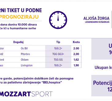 Humanitarni radMozzartHumanitarni tiket u podne: Aljoša Žorga tipuje za BELhospiceDjurdjenovembar 10, 2020novembar 10, 20201.01K Bio je član reprezentacije koja je pobedila Sjedinjene Američke Države i koja je na Svetskom prvenstvu iz 1970. godine...