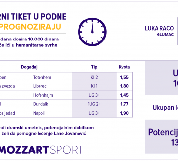 Humanitarni radMOZZART SPORTHumanitarni tiket u podne: Luka Raco tipuje za lečenje Lane JovanovićDjurdjeoktobar 29, 20201.14K