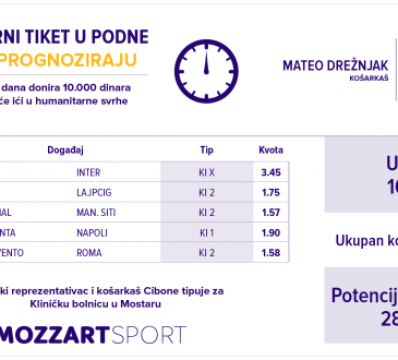 Humanitarni radMozzartHumanitarni tiket u podne: MATEO DREŽNJAK tipuje za Kliničku bolnicu u MostaruDjurdjefebruar 21, 2021880Sa dvadeset godina bio je nosilac igre u Širokom. Skrenuo je pažnju na svoj kvalitet pa je parafirao ugovor sa...