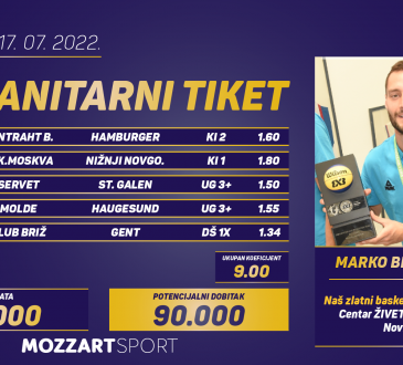 Humanitarni radMozzartHUMANITARNI TIKET U PODNE: ANA JEKOVIĆ tipuje za Uroša Radosavljevića, 1058 na 3030Djurdjejul 15, 20221.02KMOZZARTOVA današnja gošća, koja iz plemenitih pobuda sastavlja Humanitarni tiket u podne, je Ana Jeković. Nosila je dres Vizure, Beograda,...