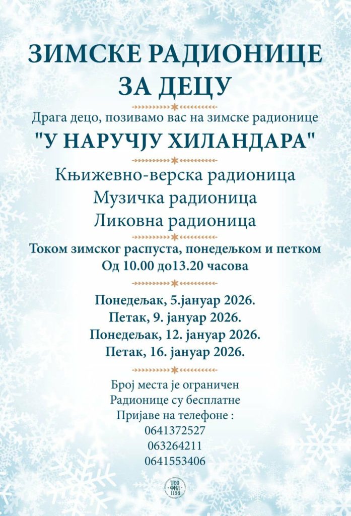 – Zimske radionice “U NARUČJU HILANDARA” organizuju se za decu.